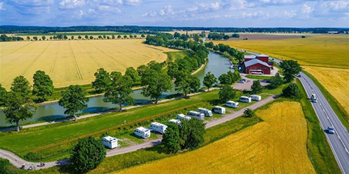 I utkanten på medeltidsstaden Söderköping och precis vid Göta kanal hittar du denna ställplats. Nära till allt men ändå lugnt och skönt.